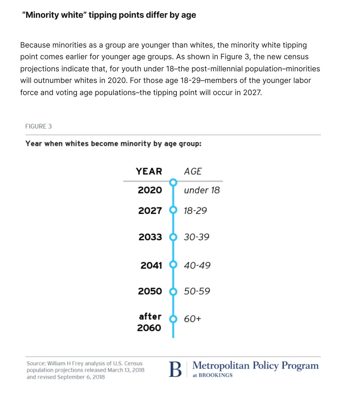 In fact, the complete racial transformation of America has now begun in earnest, with the under-18 population already being majority minority, displacing the native White population in the same age category and subjecting them to an inferior status in their homeland. William H. Frey, a renowned demographer for the Brookings Institute, has cheerfully characterized this demographic nightmare in his study as follows: Youthful minorities are the engine of future growth. His projections are valuable, nonetheless, and will hopefully be a wake-up call to most White Americans, along with a select few non-Whites, who do not share his enthusiasm.