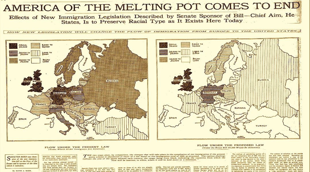 A year later, in 1924, an immigration bill was passed in Congress which, as reported by the New York Times, was designed to “preserve [the] racial type as it exists here today”. Not content with merely regulating non-White immigration and naturalization, the legislation sought to limit the influx of Eastern and Central Europeans, in an effort to preserve the original founding stock and its racial character. A racial character determined by people who were sourced almost exclusively from Northwestern Europe.