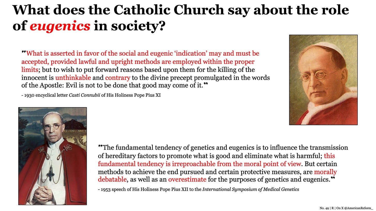 Meaning, the moral horror which is evoked nearly every time eugenics is mentioned, then, applies only to immoral and unchristian strains of eugenic thinking.